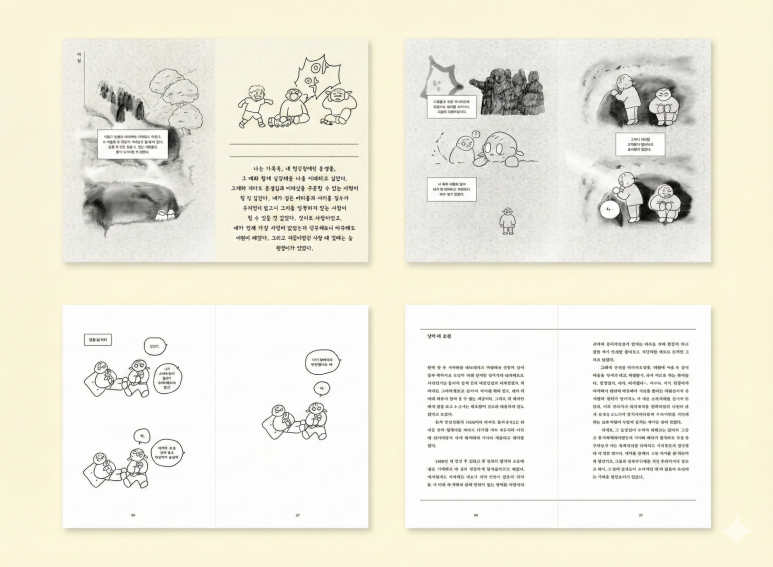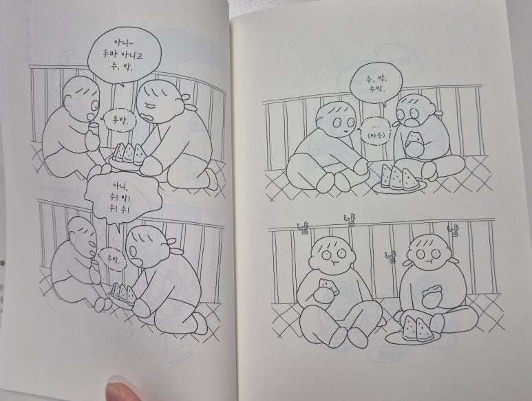하지만 이 장애 그림 에세이의 가장 큰 매력은 장애를 비극이 아닌 ‘시트콤’처럼 유쾌하게 풀어낸다는 점입니다. 원일이가 상대의 입모양(구화)을 보고 말을 이해하는 과정에서 자주 발생하는 엉뚱한 오해들을 작가는 답답해하기보다 웃음으로 승화시킵니다.
