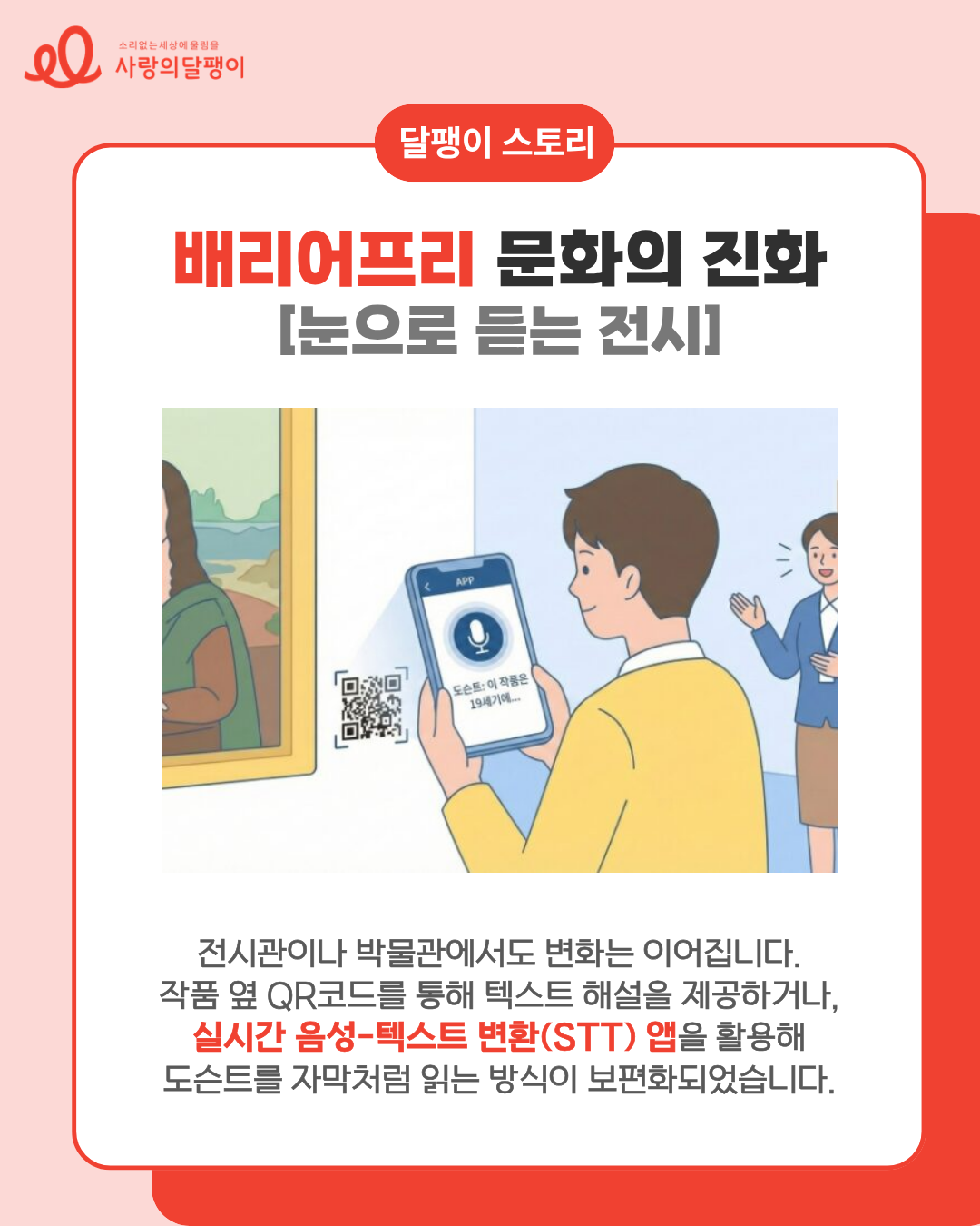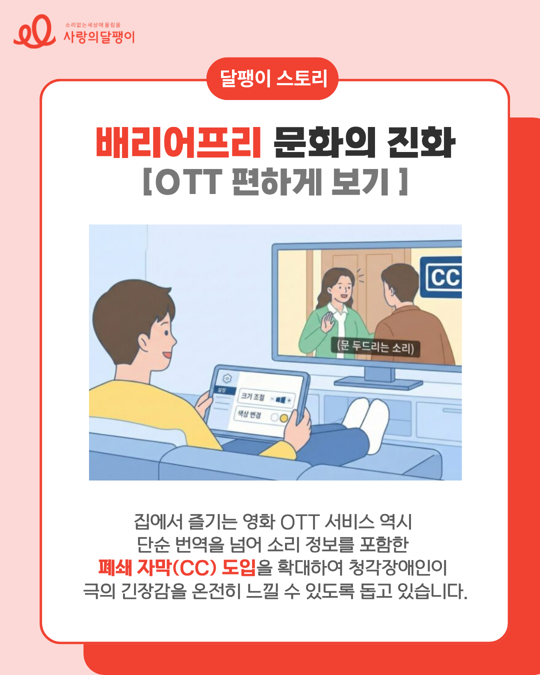 하지만 이제는 ‘안 들려서 포기했던’ 순간들을 ‘어떻게 즐길지’ 고민할 수 있는 시대가 되었습니다. 오늘은 사랑의달팽이와 함께 우리 삶의 문턱을 낮추는 배리어프리 기술✨의 모든 것을 알아보겠습니다.
