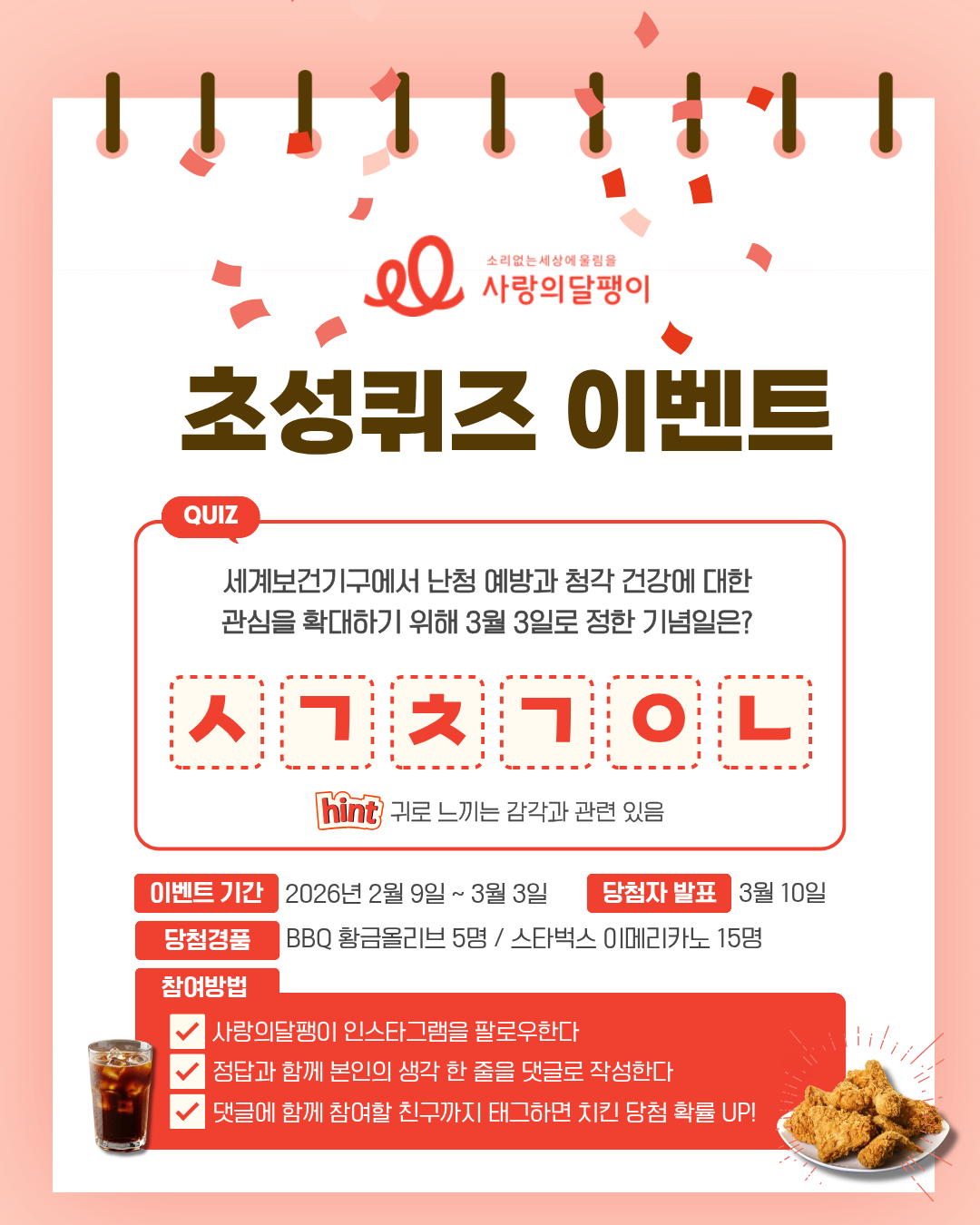 여기에 사랑의달팽이의 새해맞이 초성퀴즈 이벤트 소식📣까지 오늘도 흥미로운 소식들만 담은 이어레터가 여러분의 취향을 저격하기🔫 바라며재미있게 봐 주시기 바랍니다🩷