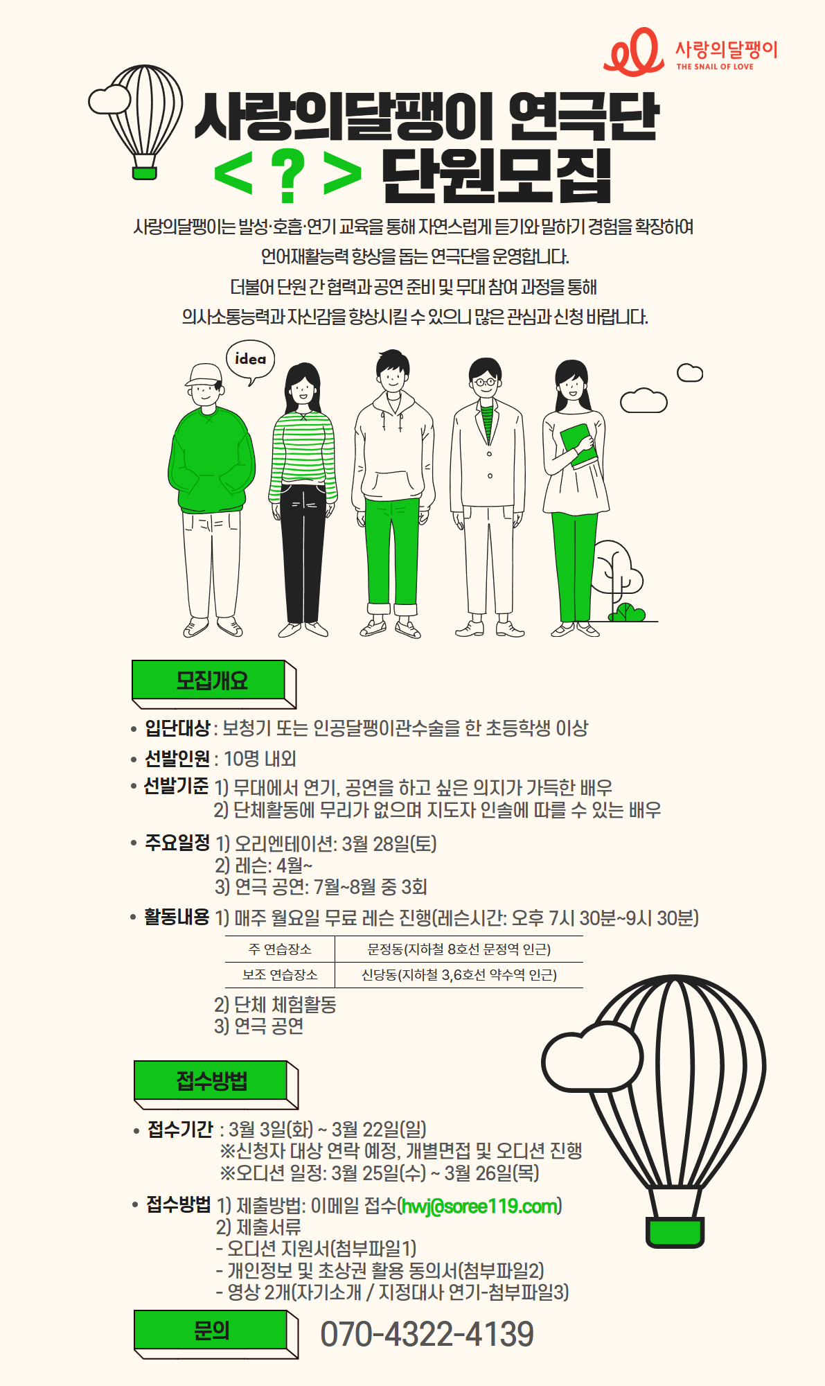 사랑의달팽이 연극단 단원 모집